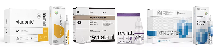 Дополнить и усилить эффект от воздействия Rеvilab ML09 можно добавив в схему терапии пептидный комплекс в растворе ПК-4. В его состав входят натуральный пептидные комплексы хрящевой ткани и иммунной системы. Натуральные пептидные препараты начинают свое действие с некоторой задержкой (1-2 недели), зато и пост-эффект от их влияния сохраняется дольше (1-2 месяца по окончании приема препарата). Поэтому сочетание в схеме натуральных и синтезированных пептидов мы считаем на настоящий момент наиболее эффективным.